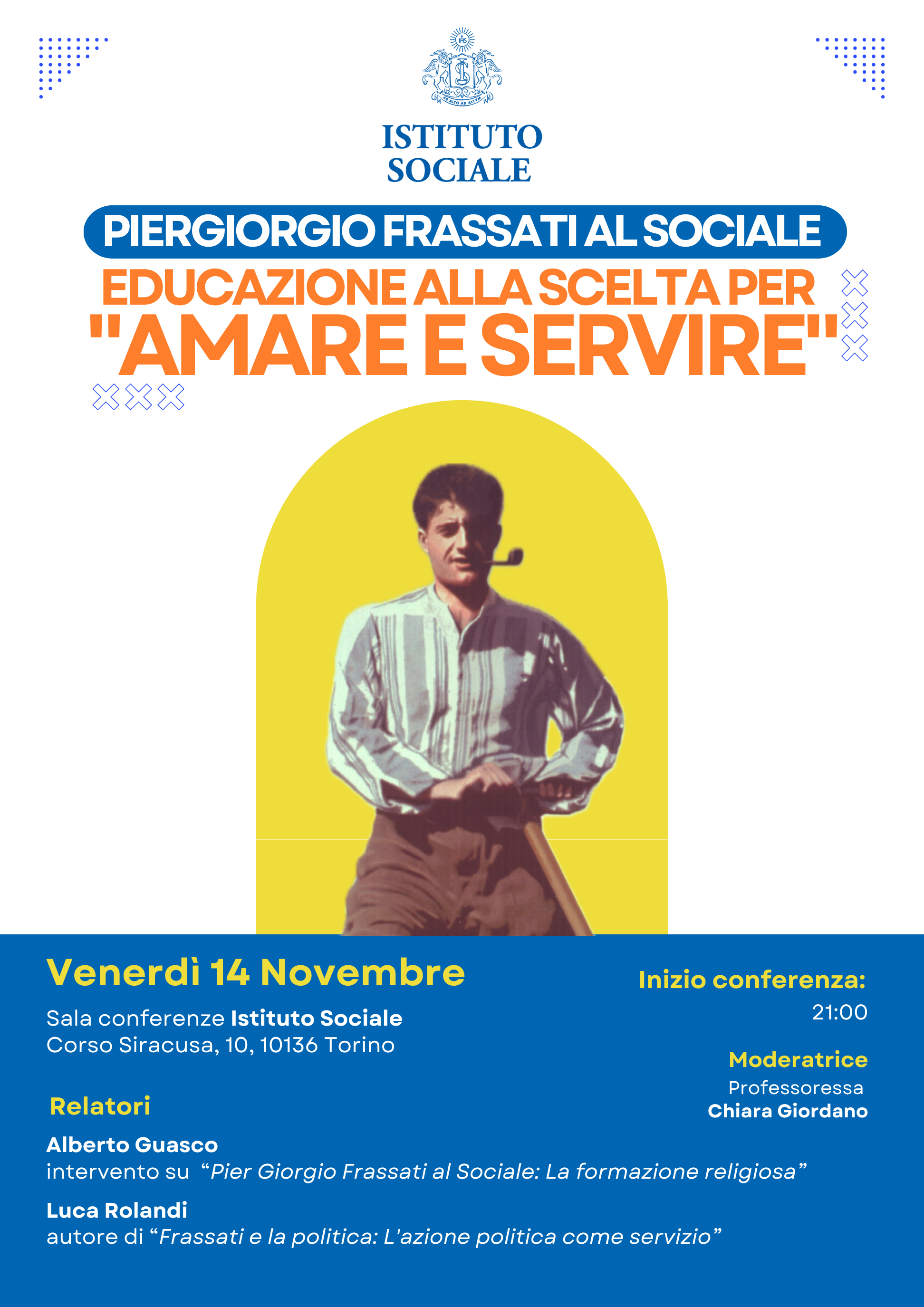Data: Venerdì, 14 Novembre, 2025Orario: 21:00 Sala Conferenze Istituto Sociale Corso Siracusa, 10 10136 Torino Italia